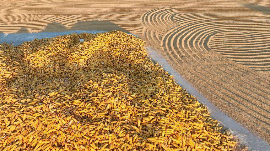 在北林区的一处打谷场上,金黄的玉米粒被均匀铺开,在阳光下泛着饱满的光泽,尽显丰收的喜悦。几只鸽子从谷场上空轻盈飞过,灵动的身影与静态的谷物相映宏泰证券,画面充满自然和谐的气息。打谷场上,人们还在稻谷间犁出一圈圈纹路,一勾一绕间,恰似大地亲手按下的温柔指纹,将丰收的细节定格。