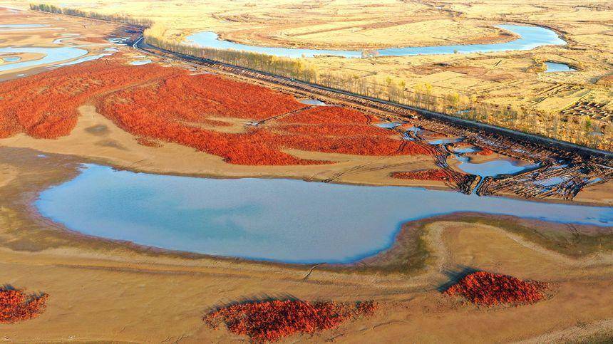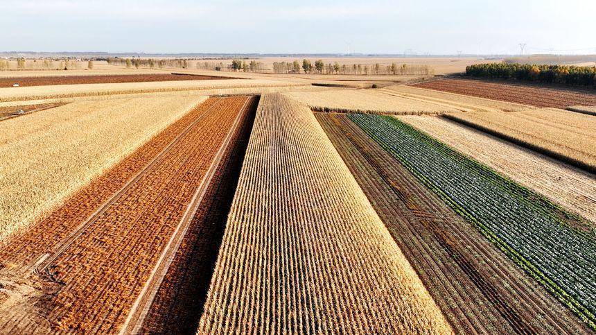 呼兰河畔与水库岸边,秋草已染上热烈的红色,一簇簇、一片片沿着水岸延展,为清澈的水色镶上亮眼的红边;安达湿地里宏泰证券,草色则更为丰富,浅黄、深褐、淡紫与残存的绿意交织,像是大自然打翻了调色盘,将湿地装扮得层次分明。尚未收割的地块上,作物排布成一趟趟放射性纹路,如同铺展在大地上的彩色地毯,纹理间满是秋的鲜活;而收割后翻耕的土地,露出黑黄相间的底色,粗糙的肌理中透着沉稳,新旧色彩碰撞间,竟让人读出几分跨季节的奇妙质感。放眼广袤大地,收割后的玉米被整齐堆放在田间,金黄的粮堆在阳光下格外醒目,与河畔红草、湿地彩叶、田野色块相映,将绥化的秋日盛景衬得愈发饱满动人。